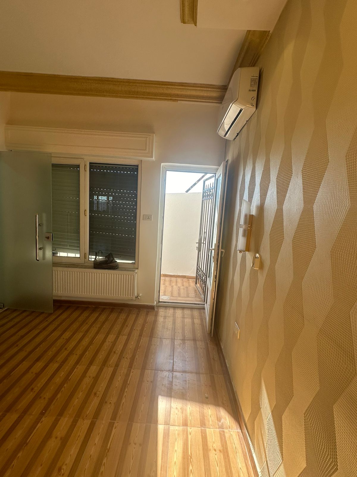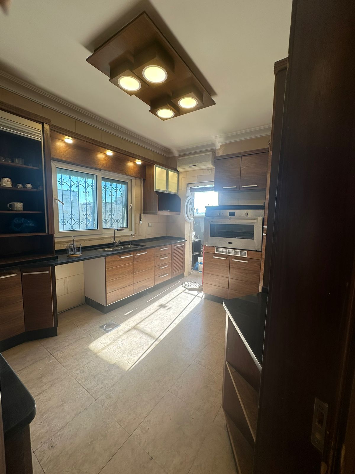 “شقة طابق ثالث مع روف مساحة رد 220 م والمواصفات كالآتي: 3غرف نوم واحدمنهم ماستر و3حمامات وصالــون ومعيــشة وغرفة سفره